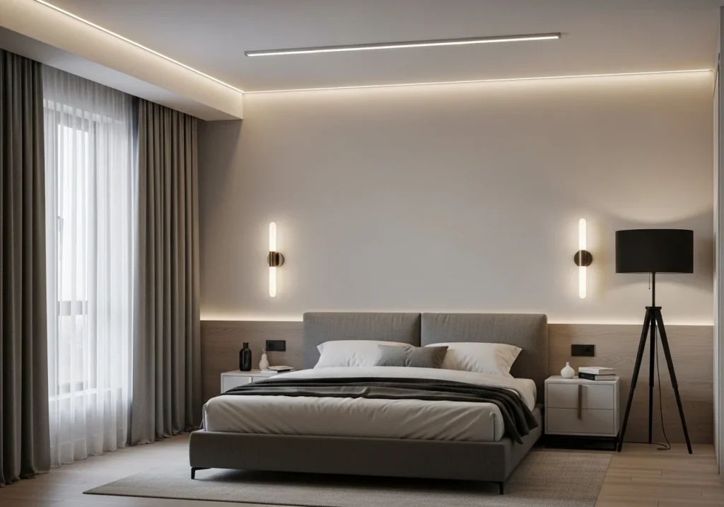 Modern bedroom lighting focuses on clean lines, smart technology, and minimal clutter.