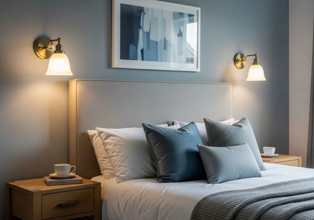 Wall sconces sit flush against the wall and save floor space. They provide soft, directional light near the bed. Sconces work well as bedside lighting alternatives. Choose warm-toned shades for a cozy bedroom look.