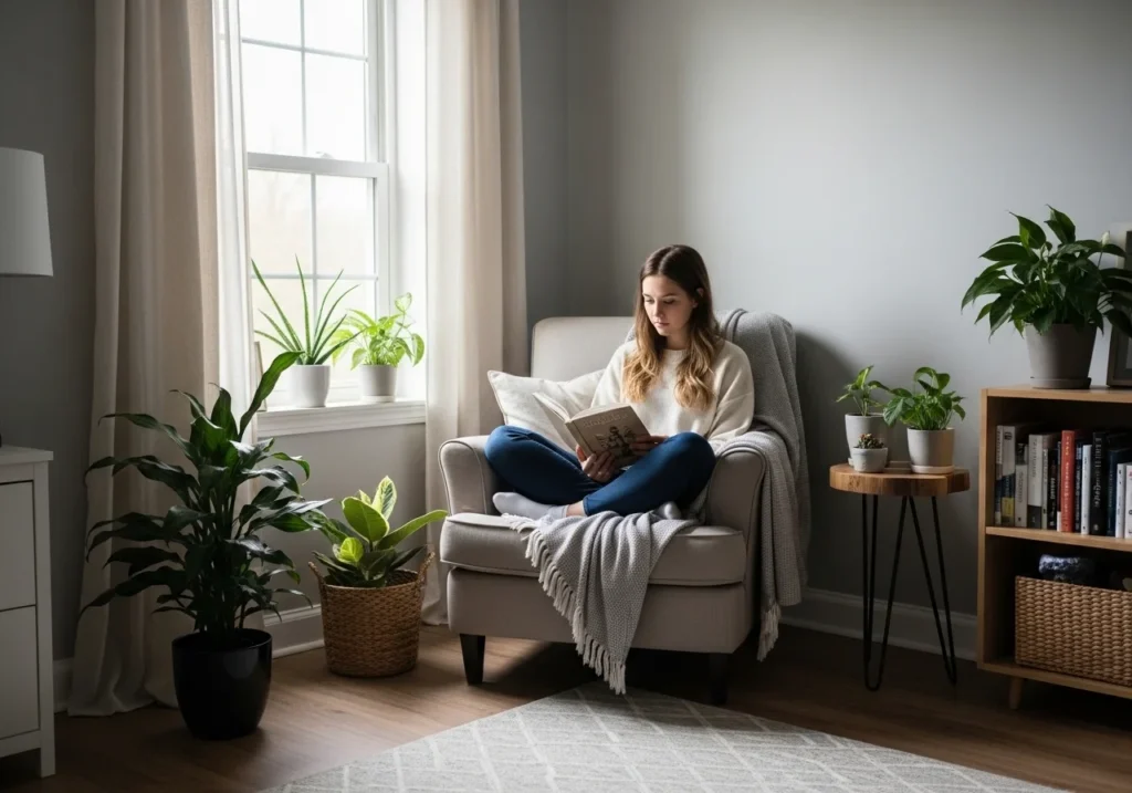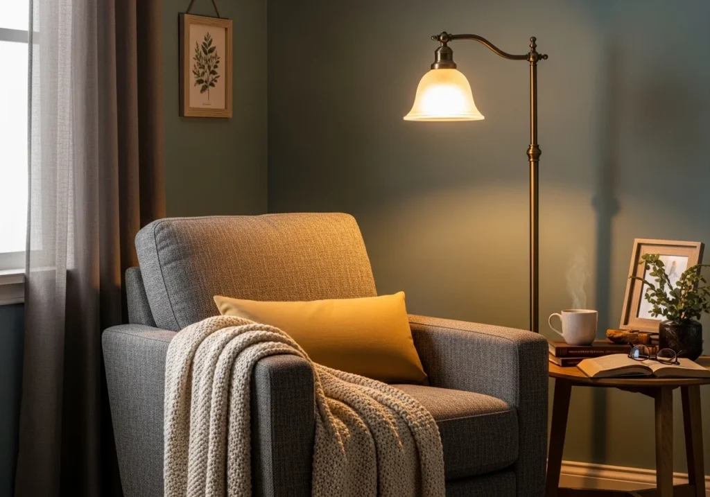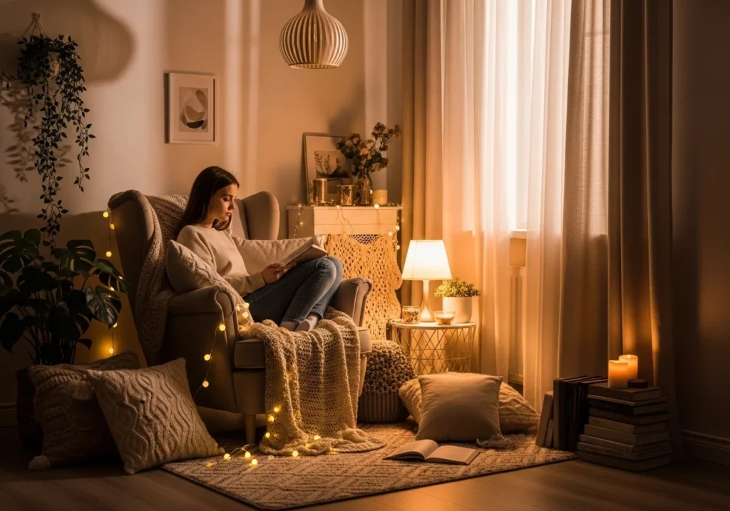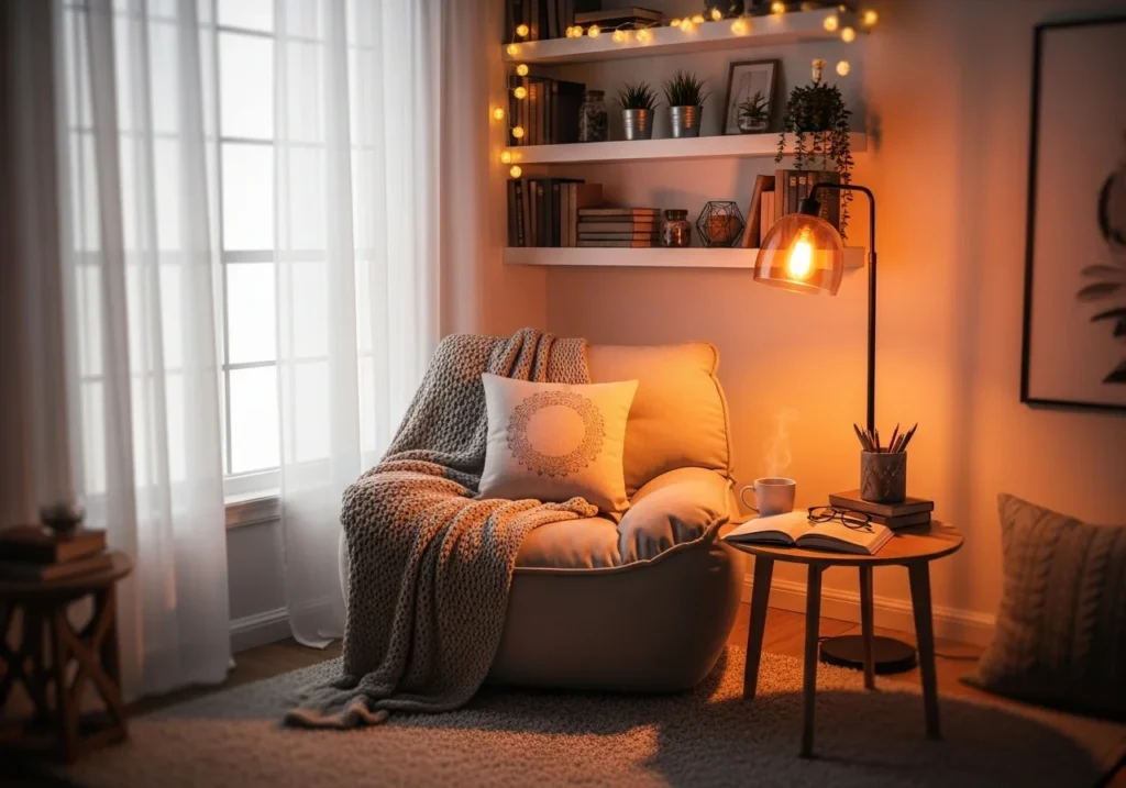 Choose a quiet corner and add a comfortable chair or cushions. Place a warm lamp nearby and add a small shelf for books. Decorate with a rug, blanket, and a plant to complete the cozy look.