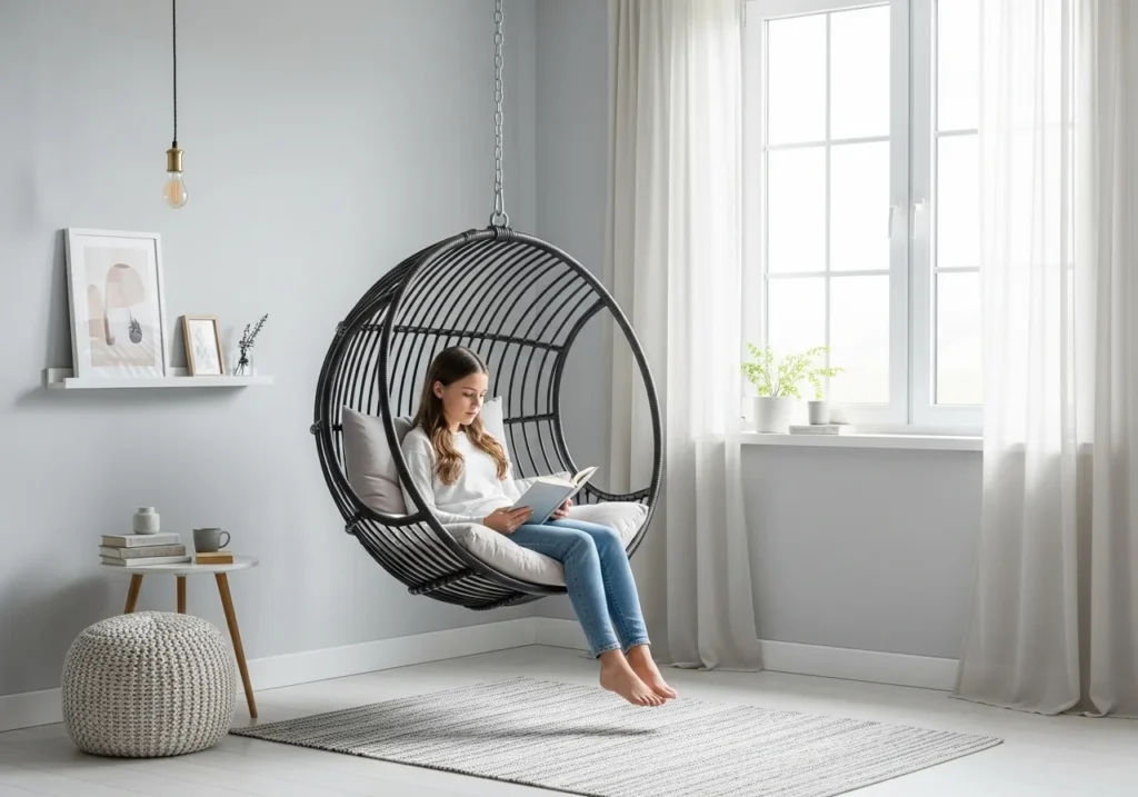 The right furniture makes your reading nook truly comfortable and inviting. A cushioned armchair or accent chair is the most important piece. Look for one with good back support and soft fabric for long reading sessions. Add a footrest or small ottoman to keep your legs relaxed while reading. Soft cushions and a throw pillow make the seat feel warm and personal. A small side table holds your drink, bookmark, or reading lamp nearby. Choose furniture that fits the space without crowding it.