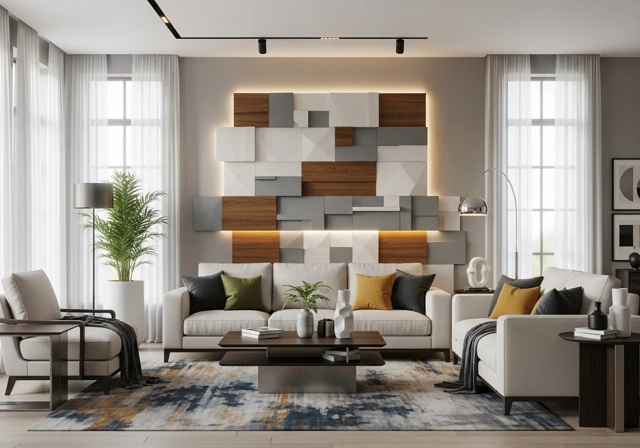 - Wooden Textures: Wood adds warmth to a room. A wooden coffee table or oak shelves create an organic feel.